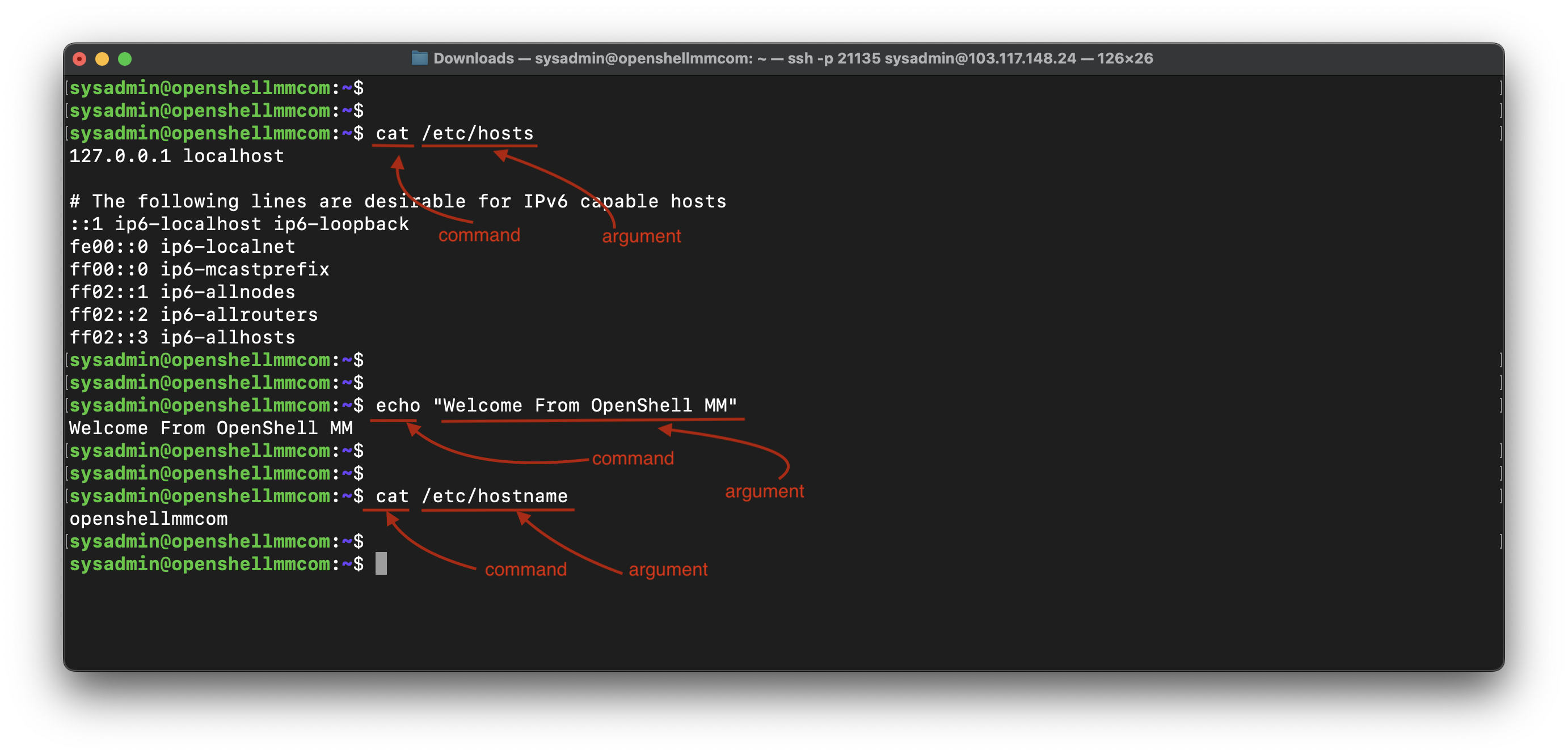 - ကျွန်တော်တို့ သတ်မှတ်တဲ့ argument data တွေသည် command မှာ input data အနေနဲ့ အလုပ်လုပ် သွားမှာ ဖြစ်ပါတယ်။