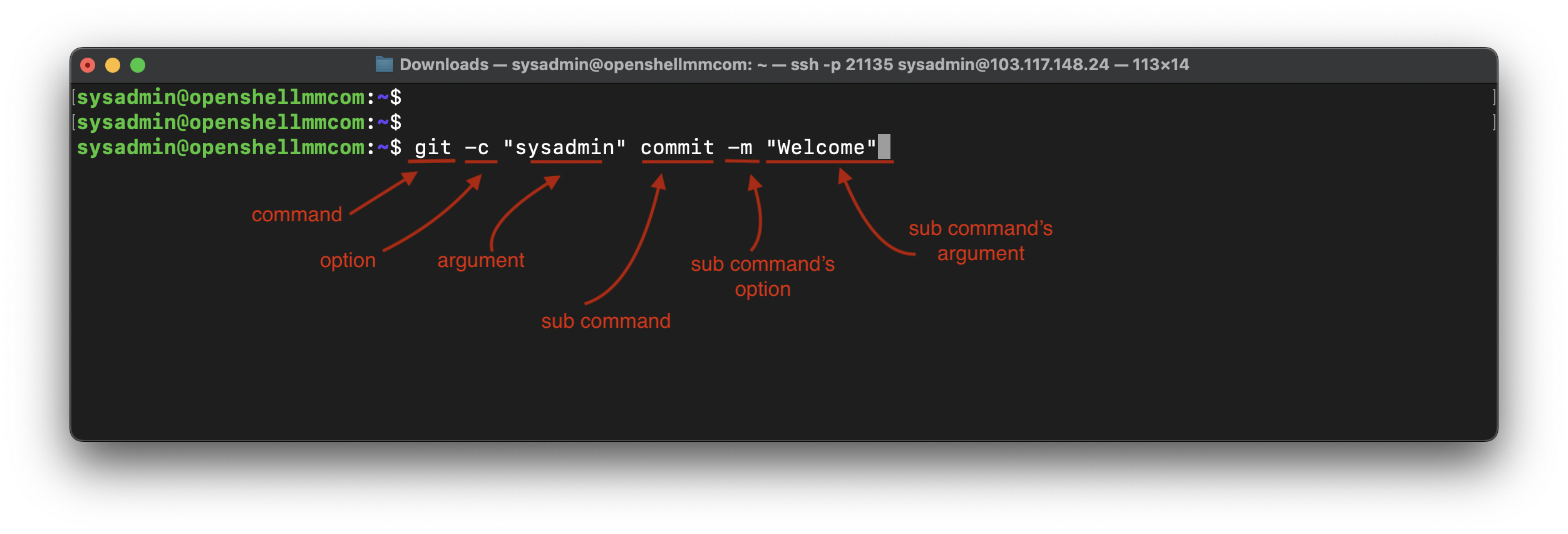 - တစ်ချို့ command တွေမှာ ဆိုရင်တော့ sub-command ပါဝင်တာ တွေ့ရမှာ ဖြစ်ပါတယ်။