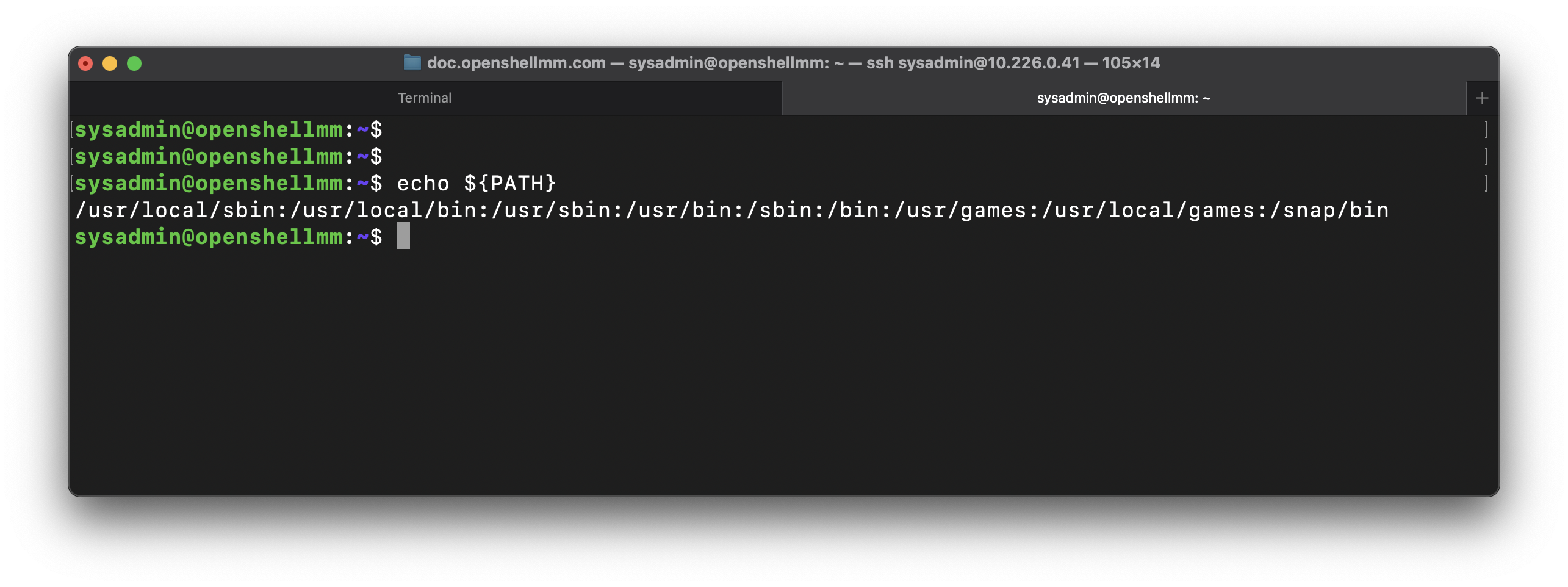 Terminalကနေ command တစ်ခုကို ရိုက်ပြီး Enter နှိပ်လိုက်ပြီဆိုတာနဲ့ user အသုံးပြုခွင့်ရှိတဲ့ privileges level နဲ့shellprogram ကနေ ပြီးတော့ environment variable${PATH}မှာ သတ်မှတ်ထားတဲ့ directory path လမ်းကြောင်းတွေကို အသုံးပြုပြီးcommandကို ရှာဖွေ execute ပြုလုပ်ပေးမှာ ဖြစ်ပါတယ်။ echo ${PATH}command ကို အသုံးပြုပြီး command အများစု ကို သိမ်းဆည်းတဲ့ binary path လမ်းကြောင်းတွေကို စစ်ကြည့်နိုင်ပါတယ်။